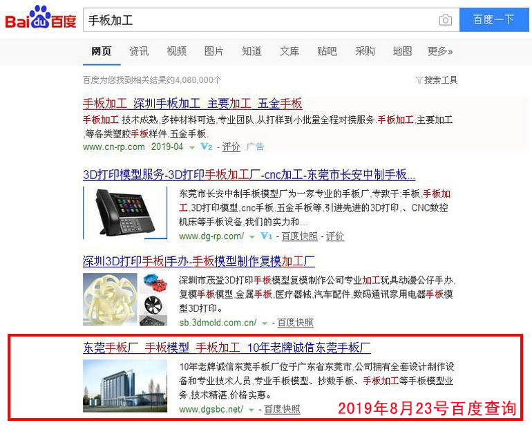 東莞手板廠 : 2019-02-28上線    2019-03-05百度第18名    2019-03-19百度第8名    2019-03-25百度第2名(排名第1名的網(wǎng)站www.dgsbc.net也是我公司管理優(yōu)化的網(wǎng)站)